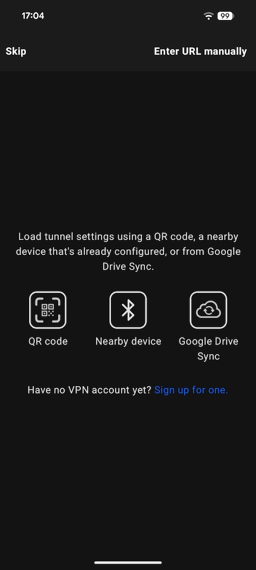 The Google Drive Sync allows you to setup the server list (using the QR code) on your Android phone and sync it with other Android devices, like an Android TV.