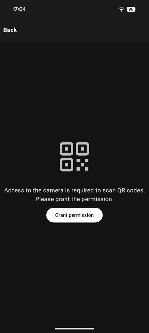 To scan QR codes, Floxcore needs permission to access your camera. Tap Grant permission.