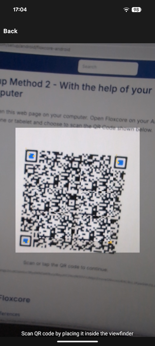 If you're reading this on your Android device, you can simply tap the QR code a the top of this page and it will open Floxcore and complete the setup.